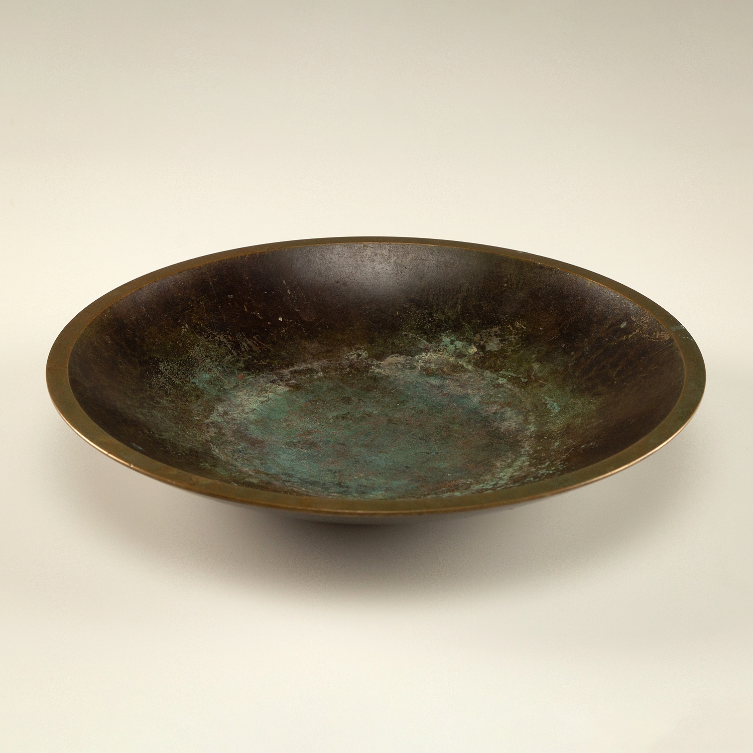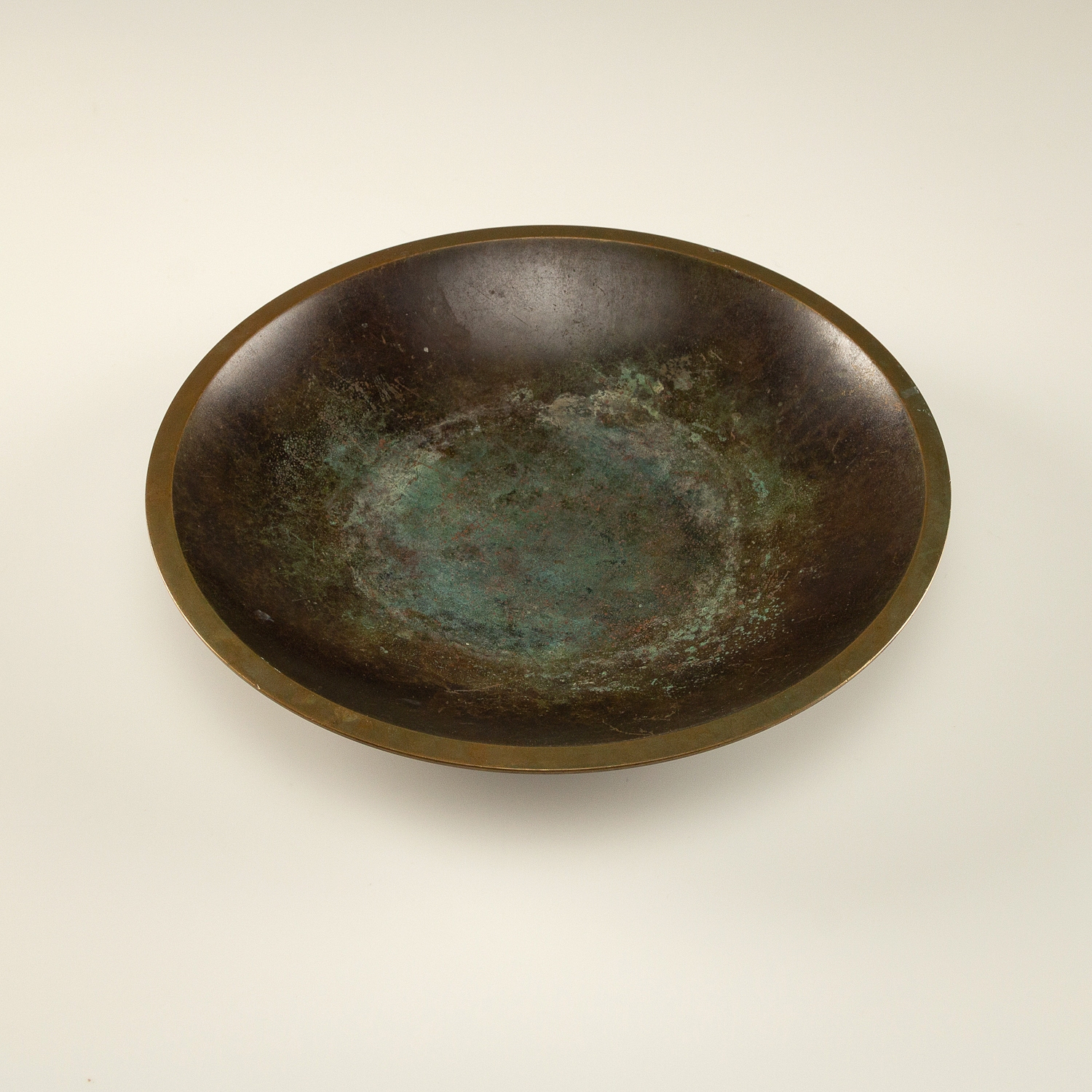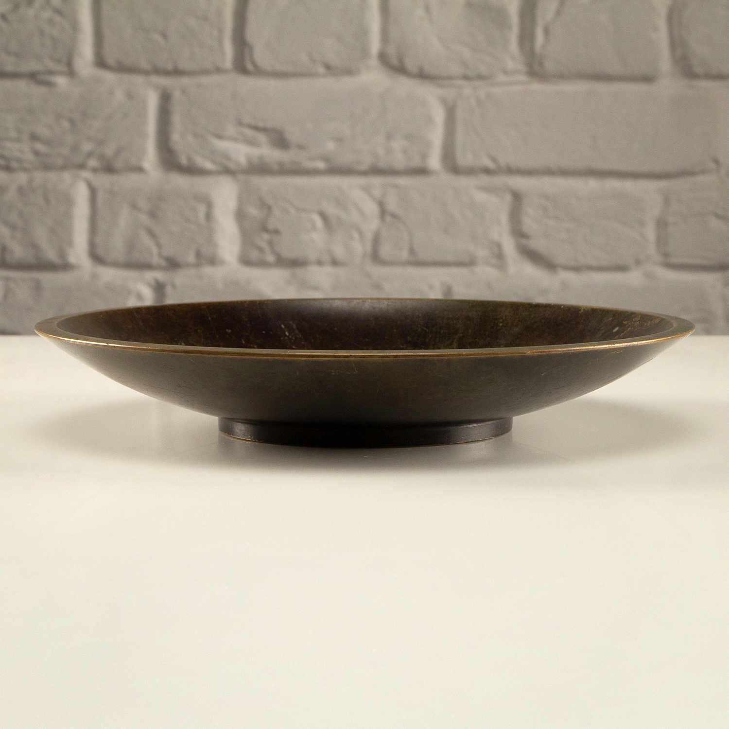An Art Deco Model B1892 bowl by Just Andersen (1884-1943) in Disko Metal, Denmark, 1930s. Andersen invented the metal alloy which he named after Disko Bay in Greenland, the country of his birth. Whilst the basic composition of the alloy is known he took the precise recipe with him to his grave. Good weight with beautiful patina.