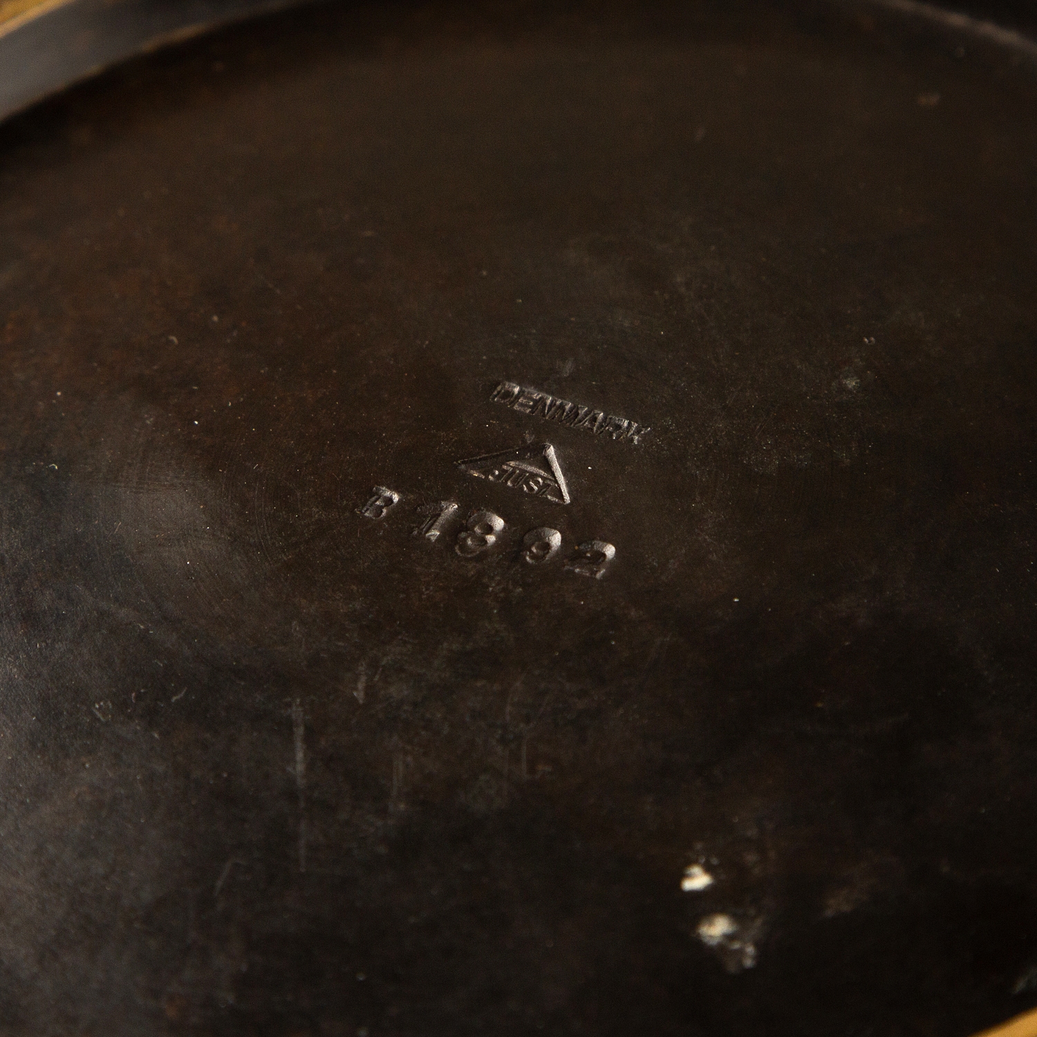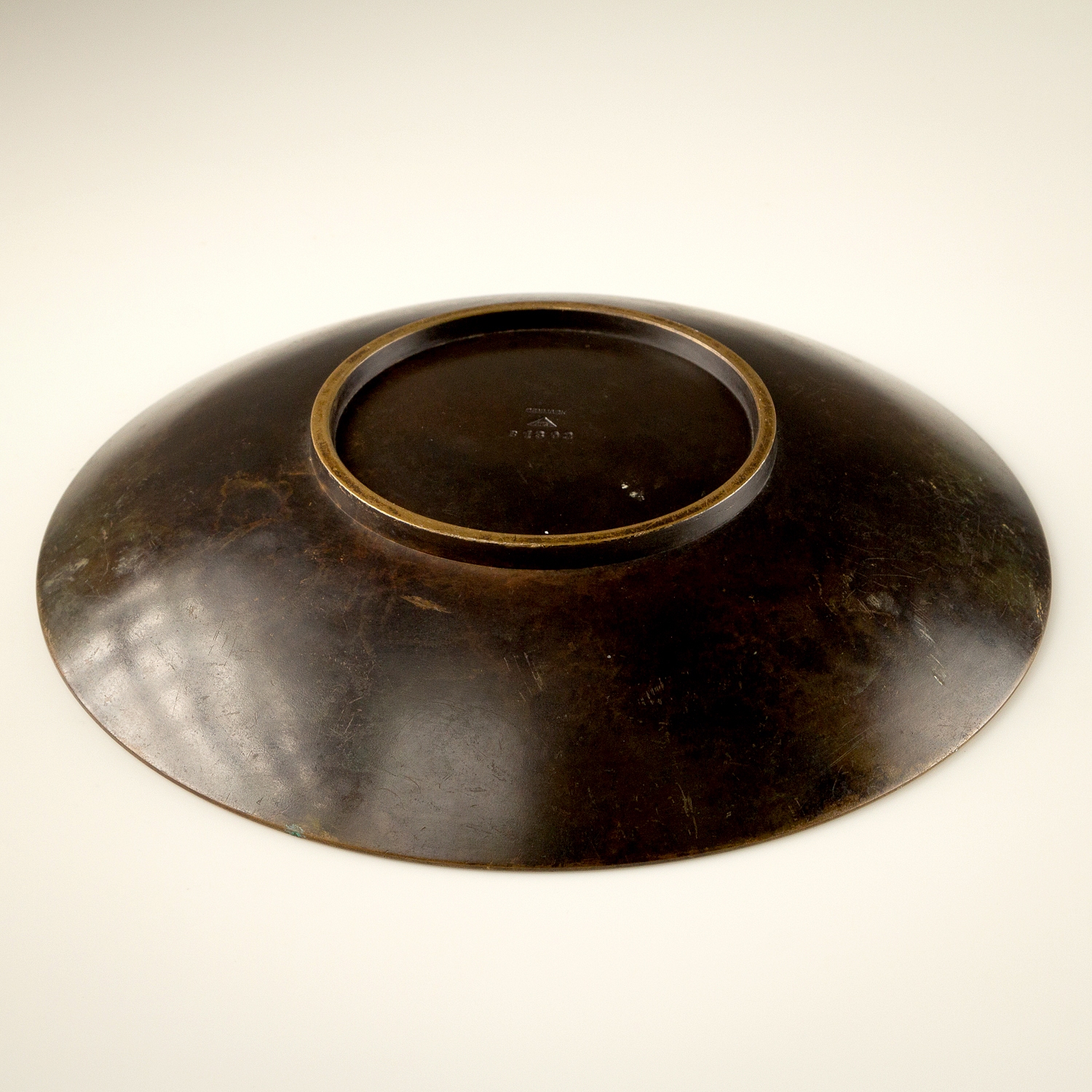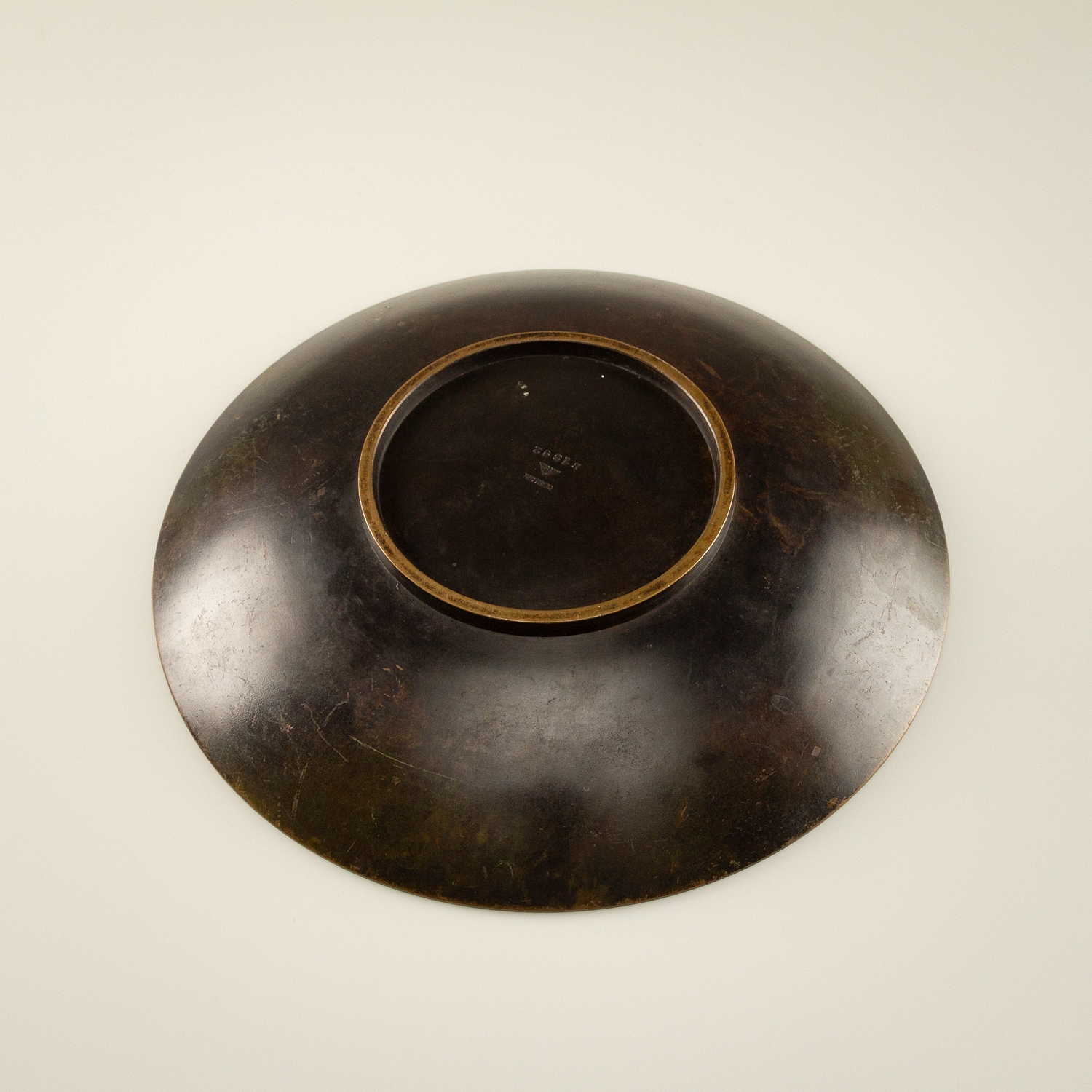 An Art Deco Model B1892 bowl by Just Andersen (1884-1943) in Disko Metal, Denmark, 1930s. Andersen invented the metal alloy which he named after Disko Bay in Greenland, the country of his birth. Whilst the basic composition of the alloy is known he took the precise recipe with him to his grave. Good weight with beautiful patina.
