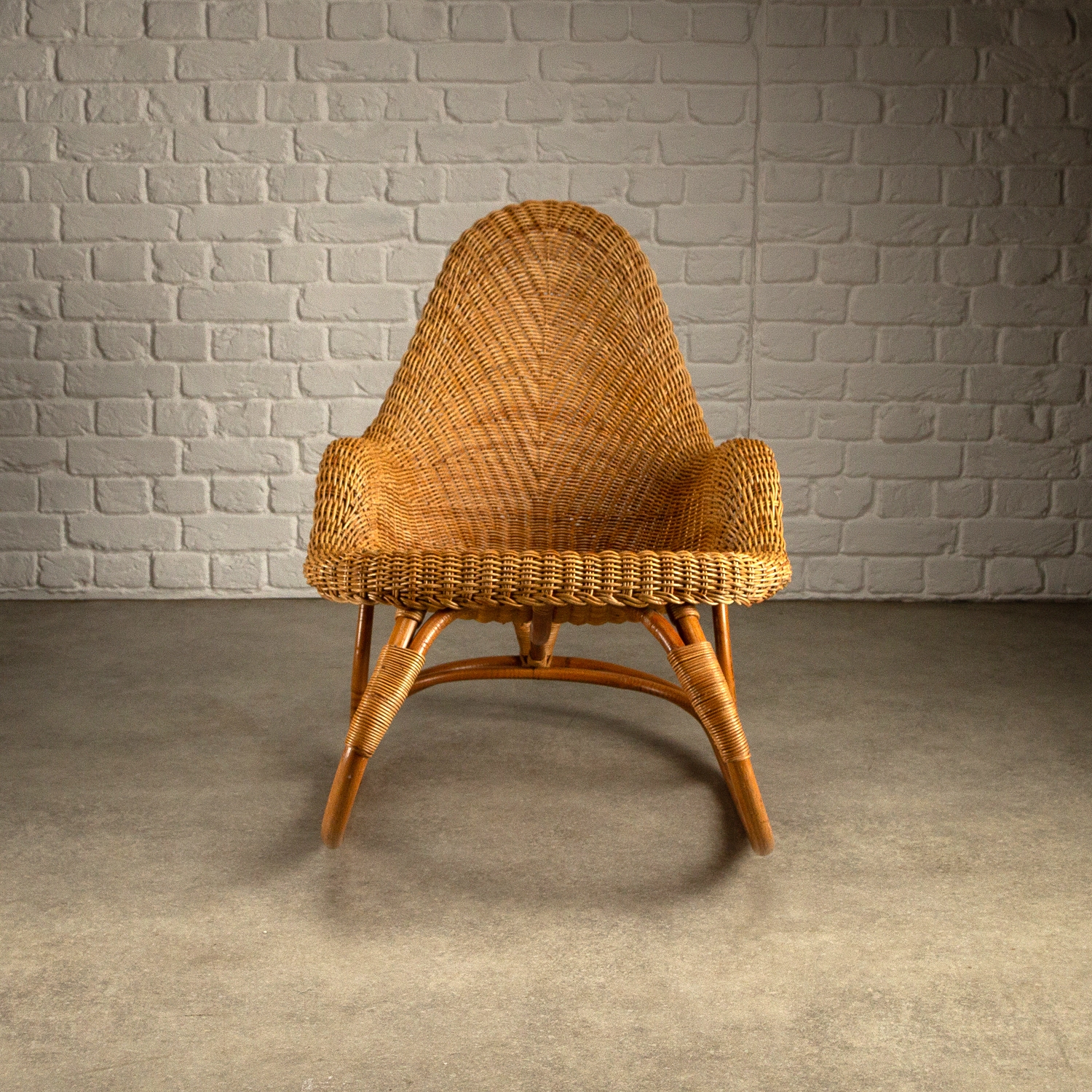 Art Nouveau rocking chair attributed to Victor Horta, (1861 – 1947) Belgium circa 1905. Wicker with bamboo frame. Very good original condition. A very comfortable rocker. Seat height 43cm.